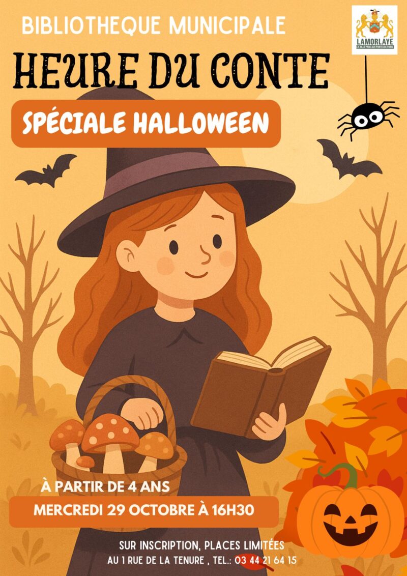 La bibliothèque municipale de Lamorlaye invite les jeunes lecteurs à partir de 4 ans à une séance contée spéciale Halloween, mercredi 29 octobre à 16h30.