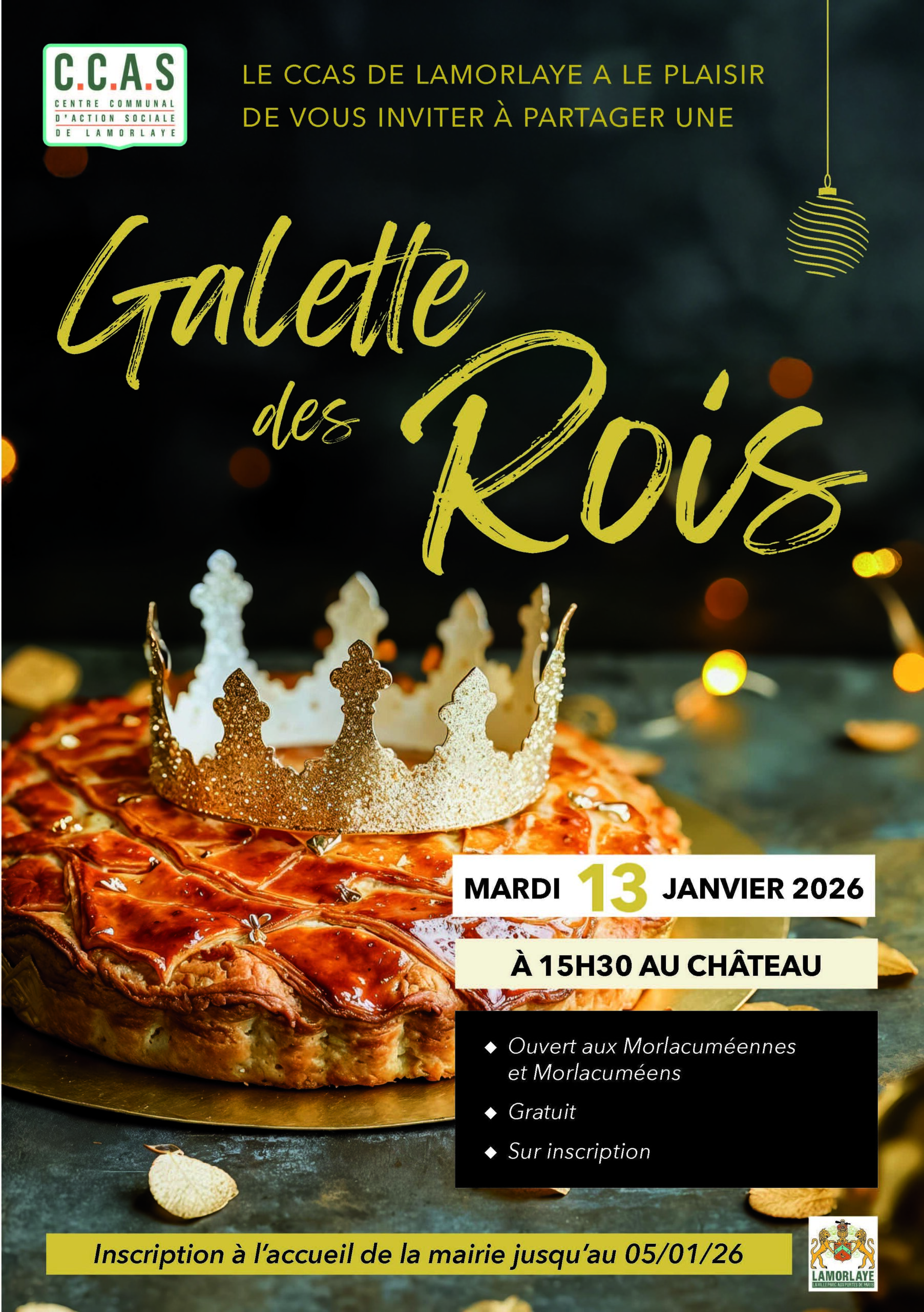 Le CCAS de Lamorlaye a le plaisir de vous inviter à partager un moment convivial autour de notre traditionnelle Galette des Rois !
